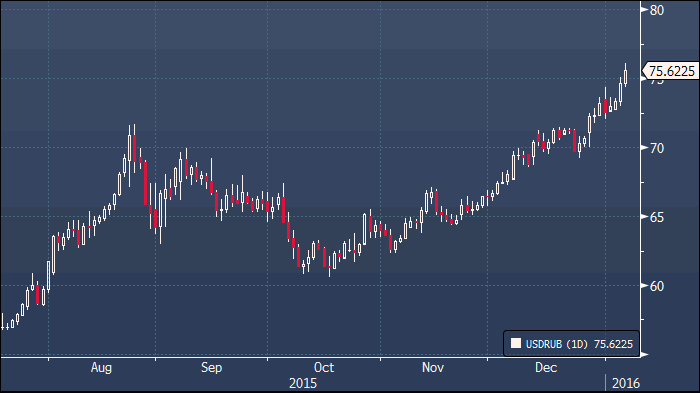 Выходной в России, вероятно, стал фактором, обусловившим резкость движения, однако и при нормальном уровне ликвидности от российской валюты можно было ожидать ощутимых потерь. Доллар/рубль прибавил 85 копеек и торгуется в районе 75.52, евро/рубль подорожал на 1.09 до 81.61, и подобные результаты не вызывают особого удивления, принимая во внимание падение цен на нефть (февральский фьючерс брент торгуется ниже $33 за баррель), а также общий всплеск пессимизма на фоне развития событий на фондовых площадках Китая. Вмешательство регулятора здесь выглядит вероятным и может несколько сгладить неприятное впечатление, однако эффект предшествовавших мер оказался непродолжительным, и доверие и уверенность инвесторов поколеблены. Между тем, на рынке нефти все без изменений — ситуация остается стабильно негативной, и дальнейшее падение выглядит весьма вероятным, поскольку участники рынка пока не видят, чтобы падение цен сказалось на уровне добычи ключевых игроков. В условиях, когда сырьевые активы остаются под давлением, а инвесторы с опаской относятся к развивающимся рынкам от рубля сложно ожидать улучшения динамики, напротив — цели в районе 80 рублей за доллар могут быть достигнуты уже в ближайшей перспективе. Источник: ProFinance.Ru - Новости рынка Forex