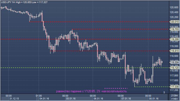 Поддержка 1: Y118.12 - часовая поддержка 8 января