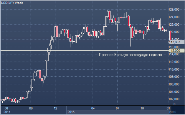 Дальнейшая судьба иены по-прежнему будет определяться в первую очередь настроениями инвесторов. По мнению аналитиков Barclays, паника и падение на мировых фондовых рынках может обусловить тестирование уровня 115.00 в паре доллар/иена уже на этой неделе. Этот уровень выступал в качестве поддержки в паре с тех пор, как Банк Японии начал программу QQE2 в октябре 2014 года.