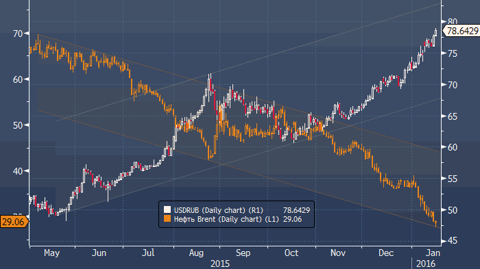 Позитивных факторов для рубля найти крайне затруднительно в текущей ситуации. Если тщательно «поскрести по сусекам», то можно отметить лишь то, что в краткосрочной перспективе, как нефть, так и рубль, выглядят перепроданными, предлагая возможность коррекции. Она вполне может быть реализована в рамках текущей недели. Однако, даже если нефть в рамках коррекции вернется в область 35 — 40 долларов за баррель, а рубль вернутся к 76.00, это лишь будет означать новую возможность для входа в продажи. Источник: ProFinance.Ru - Новости рынка Forex