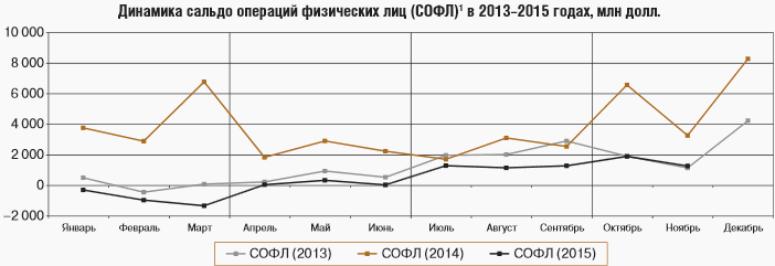 1 Разница между объемом наличной иностранной валюты, проданной физическим лицам и выданной с их счетов, и объемом наличной иностранной валюты, купленной уполномоченными банками у физических лиц и зачисленной на их счета (сальдо операций физических лиц – СОФЛ, чистый спрос (+) / чистое предложение (–).