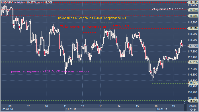 Поддержка 1: Y117.23 - часовая поддержка 18 и 19 января