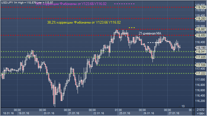 Поддержка 1: Y118.04 - часовая поддержка 27 января