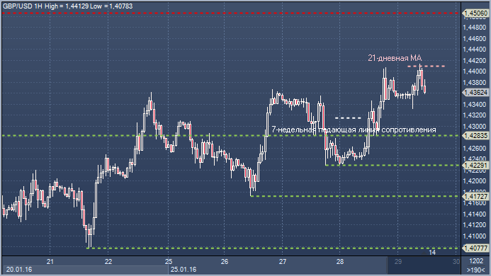 Сопротивление 1: $1.4410 - 21-дневное скользящее среднее значение