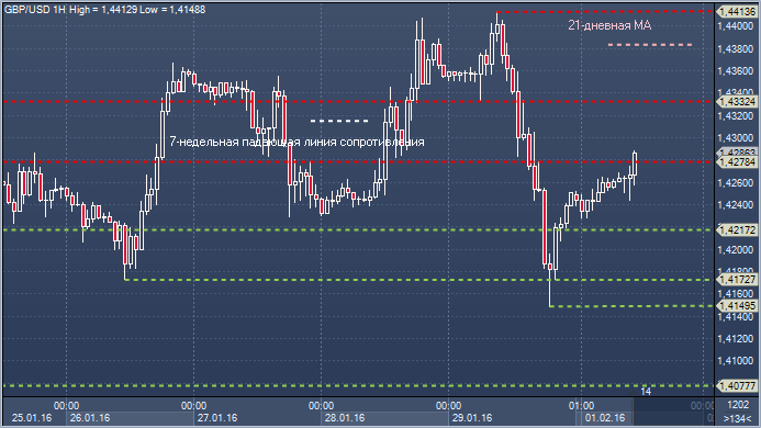 Сопротивление 1: $1.4278 - часовое сопротивление 29 января