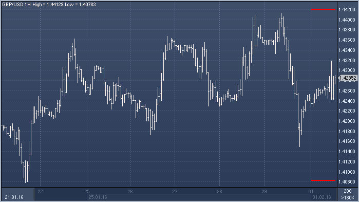 На прошлой неделе фунт/доллар поднялся до $1.4411, после чего резко развернулся и за несколько часов рухнул к $1.4151. Теперь это – важная поддержка, за прорывом которой может последовать тест январского минимума $1.4083 и психологического уровня $1.4000;