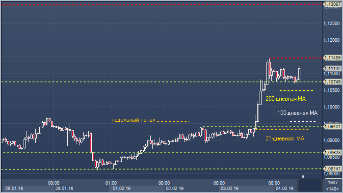 Поддержка 1: $1.1074 - часовая поддержка 4 февраля