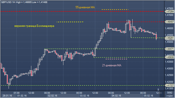 Сопротивление 1: $1.4649 - максимум 3 февраля, верхняя граница Боллинджера