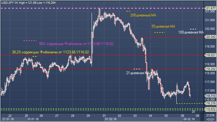 Поддержка 1: Y116.24 - минимум 5 февраля
