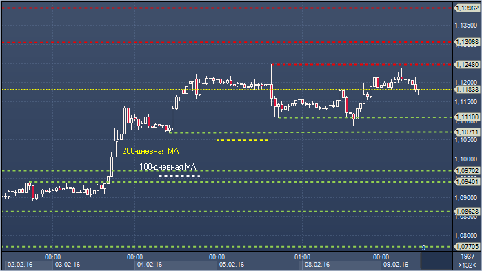 Поддержка 1: $1.1183 — часовая поддержка 9 февраля