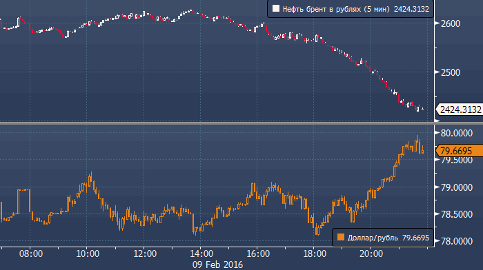 Ситуация на рынке нефти остается тяжелой: к настоящему времени цены на «черное золото» рухнули к свежим внутридневным минимумам на фоне роста беспокойства относительно роста запасов и возросшей волатильности — индекс VIX для нефти достиг отметки в 73.13 пункта, что стало максимальным значением с 2009 года. Нефть марки брент в данный момент держится около $30.36, теряя 7.66%, американская WTI сдала 6.40% до $27.79 за баррель. Потери рубля, между тем, носят более сдержанный характер, в результате чего стоимость нефти брент в рублях с полудня опустилась почти на 200 рублей до 2419 рублей за баррель. Доллар/рубль в настоящее время держится около 79.73, штурмуя максимумы прошлой недели около 79.88, и, хотя в сложившихся условиях российская валюта выглядит еще весьма прилично, перспективы выглядят довольно мрачными. Корреляция между рублем и нефтью остается на рекордно высоких уровнях, и материализация рисков обновления минимумов на рынке черного золота грозит доллар/рублю возвращением к 85. Источник: ProFinance.Ru - Новости рынка Forex