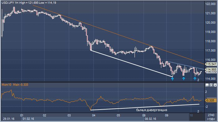 На часовом графике курса доллар/иена цены и 10-периодный осциллятор моментум сформировали бычью дивергенцию. Аналогичная картина наблюдается в индикаторе MACD и 14-периодном осцилляторе RSI. Также у нас есть в наличии краткосрочное тройное дно. В совокупности с активными слухами в Азии о том, что Банк Японии может провести интервенцию, это смещает акцент в пользу фиксации прибыли по коротким позициям и развитию восходящей коррекции. Однако с учетом низкой рыночной ликвидности и высокой волатильности спешить с покупками на текущих уровнях не стоит.