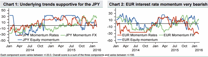 Согласно графику №2 (Chart2), общий Momentum по евро остается медвежьим. Компонент FX для евро остается позитивным, однако компоненты Rates и Equity ухудшились в сравнении с прошлой неделей и стали более отрицательными.