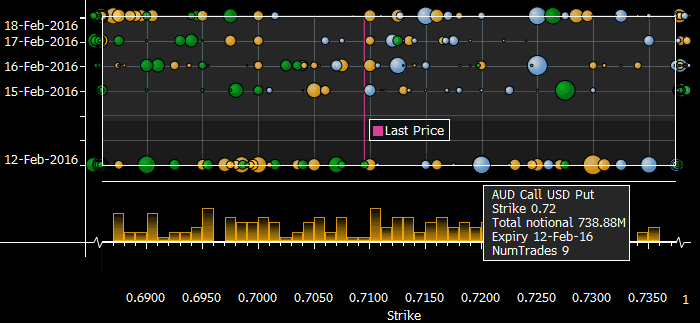Евро/доллар: $1.1100(E1.17 млрд. Mixed), $1.1225(E1.32 млрд. Mixed), $1.1300(E630 млн. Mixed), $1.1400(E839 млн. Mixed), $1.1500(E762 млн. Call) Как видно, сегодня в евро/доллар экспирируется очень много опционных контрактов с широкой линейкой страйков. При этом даже Call на уровне 1.15 сохраняет шансы оказаться в деньгах к моменту истечения Доллар/иена: Y113.50(Y809 млн. Mixed), Y115.00(Y1.91 млрд. Mixed) Со вчерашнего дня ситуация не изменилась. Рынок опционов стремительное укрепление иены застало врасплох. На диаграмме левее текущей цены практически пусто. Правее текущей цены экспирируется в убытках множество контрактов Аусси/доллар: $A0.6900($A724 млн. Put), $A0.6970-0.7000($A1.49 млрд. Mixed), $A0.7070($A478 млн. Put), $A0.7200($A739 млн. Call), $A0.7300($A1.13 млрд. Mixed) Область возле фигуры 0.7000 на сегодня выглядит не проходимой |