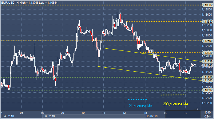 Поддержка 1: $1.1118 — часовая поддержка 17 февраля