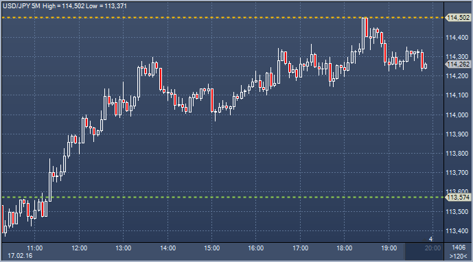 | 17.02.16 17:57 | Credit Agricole: в ближайшие недели следует проявлять повышенную осторожность | 17.02.16 20:10 | Rabobank : риски снижения доллар/иены преобладают |