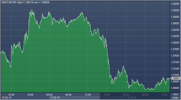 Американская валюта стабильна после выхода протокола январского заседания ФРС. Инвесторы уже не реагируют на тот факт, что центробанк США не будет поднимать процентную ставку в марте. Он уже заложен в котировки доллара. Ранее об этом дал понять ряд представителей регулятора. Об этом чиновники говорят чуть ли не каждый день. В частности, вчера Джеймс Буллард сказал, что пока стоит повременить с ужесточением монетарной политики в Штатах. Поэтому инвесторы обратились к канадской валюте. Она отвечает ростом в четверг до двухнедельного максимума на резкое повышение цен на нефть. Вчера Иран поддержал принятое тремя странами ОПЕК и Россией решение об удержании потолка добычи. Несмотря на то, что из высказываний министра нефти Ирана Бижана Зангане не ясно, говорил ли он о намерении Тегерана также оставить добычу на уровне января, фьючерсы на нефть марки Brent подорожали примерно до $35 за баррель, отступив от минимума этой недели в $32.