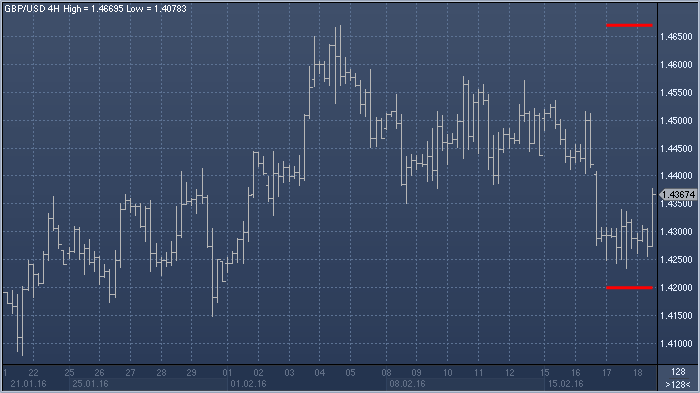 Риск выхода Великобритании из ЕС и практически полное отсутствие каких-либо перспектив повышения ставок Банком Англии в этом году продолжат оказывать давление на фунт/доллар. В результате роста волатильности на мировых рынках и сохраняющейся неопределенности относительно исхода референдума по вопросу членства в ЕС инвесторы пересмотрели свои прогнозы по действиям MPC. Теперь ожидания кардинально изменились, и вместо повышения ставок рынок прогнозирует их снижение. Сопротивление $1.4670 должно ограничить попытки роста пары в следующую пару недель, и мы видим риски скорого теста области $1.4200. Источник: ProFinance.Ru - Новости рынка Forex