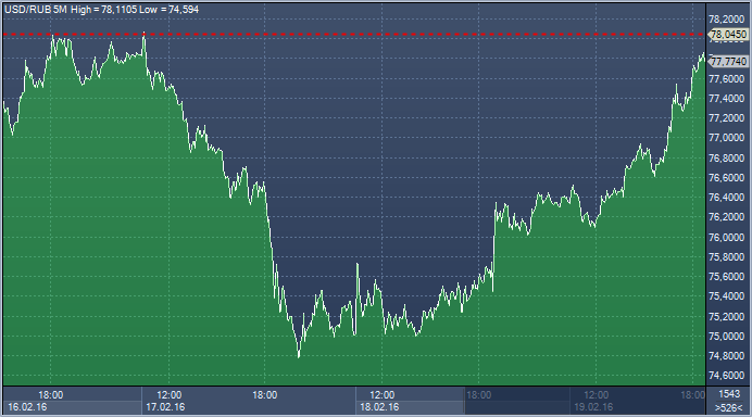 Курс рубля к доллару и евро вечером пятницы усилил снижение вслед за нефтью, скорректировавшейся в район 33 долларов за баррель сорта Brent. К полудню пятницы рубль выходил даже в плюс. Российский рынок готовится к длинным праздниками, сразу после которых будет пик налоговых выплат. 25 февраля наступает срок уплаты НДС и НДПИ, в преддверии которого экспортеры, вероятно, увеличат продажи валютной выручки. Поэтому ослабление рубля, которое наблюдается сейчас может сойти на нет на следующей неделе. К тому же, вечером сегодня в 21.00 мск выйдут цифры о число буровых установок от Baker Hughes. Эти данные могут повлиять на динамику нефтяных котировок и, соответственно, курс рубля.