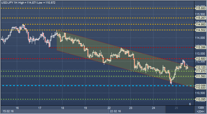 Поддержка 1: Y111.87 - часовая поддержка 25 февраля