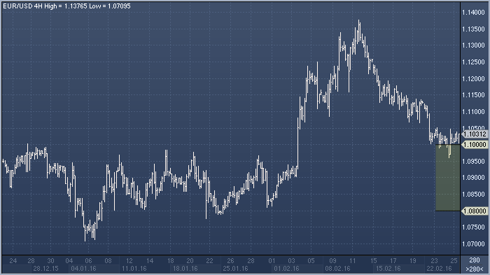 Мы остаемся медведями по евро/доллару на ближайшую неделю. Пара достигла нашей цели $1.10, однако медвежий моментум сохраняет силу, и в случае утраты поддержки $1.10, евро/доллар, вероятно, начнет обторговывать диапазон $1.08-$1.10. Это логично, учитывая приближающееся заседание ЕЦБ (10 марта), на котором, как ожидается, будет объявлено о расширении стимулирующих мер из-за замедления экономики Еврозоны. Источник: ProFinance.Ru - Новости рынка Forex