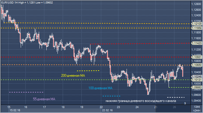 Поддержка 1: $1.1013 - часовое поддержка 26 февраля