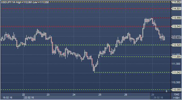 Сопротивление 1: Y113.54 - часовая поддержка 29 февраля, в настоящее время - сопротивление