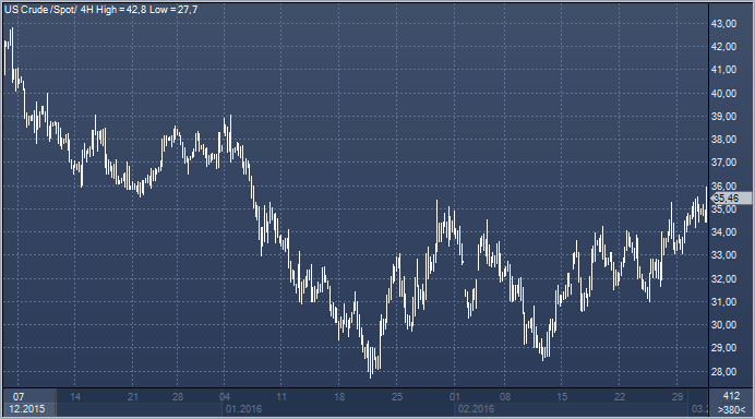 В январе цены на нефть достигли 10-летних минимумов, после чего началось их восстановление. Упорное нежелание цен снова идти вниз, особенно под психологическую планку в 30 долларов за баррель, породило догадки о том, что рынок ищет дно. Поводом к такому поведению стали надежды участников рынка на то, что крупные нефтедобывающие страны ограничат добычу. Тем не менее, пока все еще сохраняется избыток предложения нефти, который в последние два года оказывал перманентное давление на цены. Этому способствовало увеличение производства нефти в различных регионах мира, от Саудовской Аравии до Техаса.