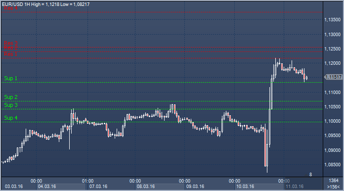 Поддержка 1: $1.1133 — часовая поддержка 10 марта