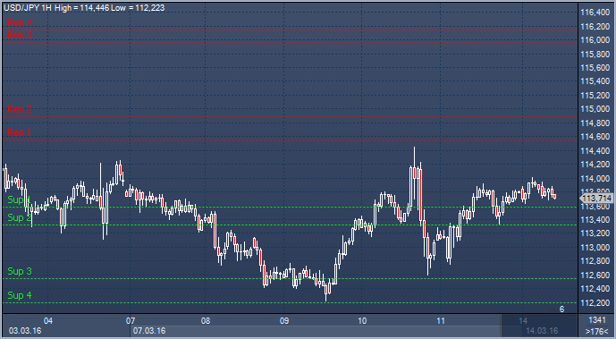 Поддержка 1: Y113.58 - часовая поддержка 14 марта