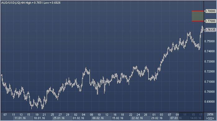 Последние недели аусси/доллар рос благодаря ралли котировок железной руды, а после его окончания вчера получил новую порцию допинга от FOMC. Осторожная позиция Комитета обрушила доллар, спровоцировав всплеск спроса на рискованные активы, включая высокодоходные валюты и сырье. Этого запаса горючего может хватить для роста пары к $0.77 или даже $0.78 к апрелю, однако по мере укрепления австралийской валюты мы будем все чаще слышать слухи о грядущем снижении ставок РБА (вероятность этого события до конца года и без того уже на 100% учтена в ценах). Таким образом, в краткосрочной перспективе мы придерживаемся бычьих прогнозов по паре, но среднесрочно ждем снижения. Источник: ProFinance.Ru - Новости рынка Forex