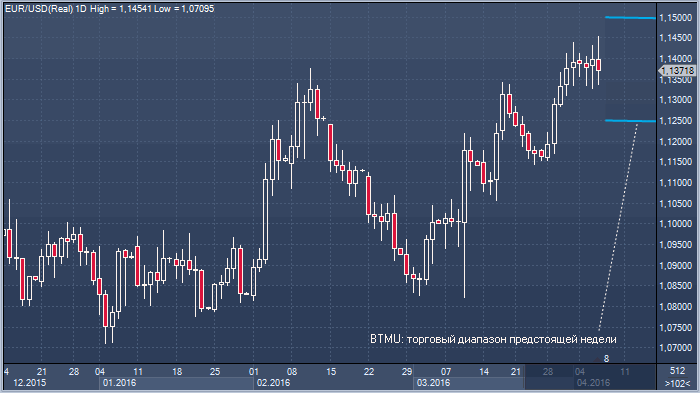 На предстоящей неделе ключевое внимание участников рынка будет направлено на розничные продажи и отчеты по потребительской инфляции. Также в фокусе будут коментарии некоторых представителей ФРС. Также следует учитывать, что в текущем 2 квартале, по мере приближения его финальной части, давление на евро будет увеличиваться со стороны рисков выхода Великобритании из состава ЕС (референдум в июне).