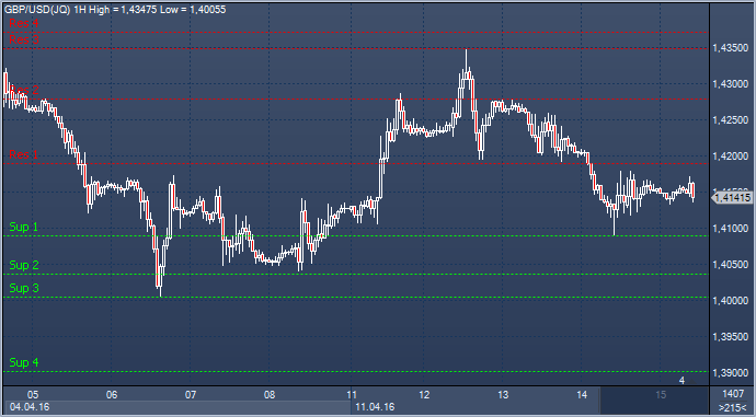 Сопротивление 1: $1.4190 - часовая поддержка 13 апреля, в настоящее время сопротивление