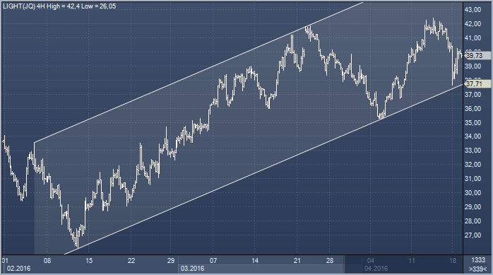 Потери, понесенные на фоне разочарования итогами встречи в Дохе, удалось восстановить, но пока попытки нефти закрепиться выше $40 за баррель остаются неудачными, и признаки ослабления восходящего импульса дают медведям повод для оптимизма в отношении краткосрочных перспективе. Прорыв ниже $39.60/50 откроет дорогу к $39.25/20 и $39 за баррель, тогда как потеря последней поддержки поставит под угрозу нижнюю границу восходящего канала.