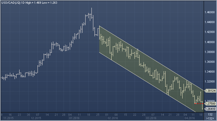 Мы остаемся медведями по доллар/луни и рекомендуем продавать на любых попытках роста. В первой половине торговой сессии понедельника пара ненадолго взлетела в область вершины нисходящего канала около C$1.30, однако это лишь привлекло медведей, и канадская валюта рухнула к новым минимумам. С технической точки зрения, закрытие недели ниже C$1.2750 создаст предпосылки для снижения к C$1.21 до конца второго квартала. Источник: ProFinance.Ru - Новости рынка Forex