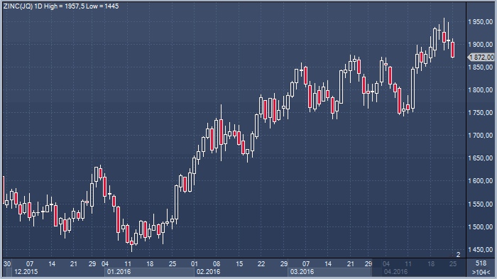Золото не относится к сырьевым активам, тем не менее, инвесторам, торгующим данным драгоценным металлом, целесообразно внимательно следить за тем, как ведут себя «промышленные собратья». В качестве примера. В понедельник были опубликованы данные по продажам новых домов в США за март, которые оказались, как хуже прогнозов, так и хуже февральского значения. На это живо отреагировали промышленные металлы. Контракты на медь с поставкой через 3 месяца на LME потеряли в цене 0.66%, опустившись до 4998 долларов за метрическую тонну. Аналогичную динамику продемонстрировали свинец, олово и цинк.