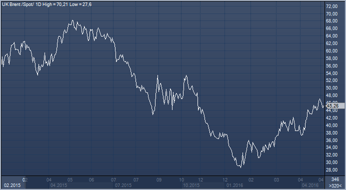 Вдобавок, укрепляется тенденция на сокращение добычи сырья в США. Так, за последние 14 недельпо 22 апреля, добыча нефти в США упала до 8,9 миллиона баррелей в сутки; в апреле же управление энергетической информации минэнерго понизило прогноз по добыче в стране на 2016 год до 8,6 миллиона баррелей в день. Подобного роста балансировка может в итоге вызвать рост нефтяных цен от нынешних уровней до прогнозных уровней, обозначенных банком. Источник: ProFinance.Ru - Новости рынка Forex