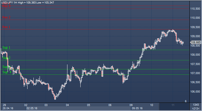 Поддержка 1: Y108.25 — часовая поддержка 10 мая