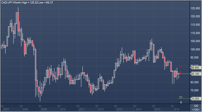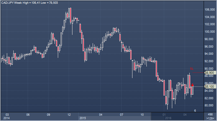Morgan Stanley сообщает об исполнении размещенного 6 мая отложенного ордера и открытии короткой позиции в CAD/JPY от 85.10 со стопом на 88.90 и расчетом на падение курса к 70. В банке полагают, что потенциал укрепления канадской валюты носит ограниченный характер ввиду ухудшающихся показателей торговли - дефицит торгового баланса Канады достиг рекордных значений. Основным драйвером таких изменений стало падение экспорта, при этом примечательно, что рост показателей статей несырьевого экспорта был непродолжительным и к настоящему времени сошел на нет. Восстановление цен на нефть дает некоторую надежду на улучшение обстановки, но в Morgan Stanley не думают, что «черное золото» способно на дальнейший устойчивый рост. Между тем, рынок продолжает жить надеждой на смягчение политики Банка Канады, чего не скажешь о Банке Японии. Инвесторы склонны считать, что его возможности ограничены, и чутко реагируют на сигналы об ухудшении аппетита к риску.