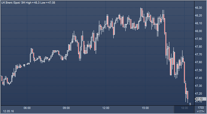 Цены на нефть корректируются в четверг после сильного роста накануне. Отчет Международного энергетического агентства (IEA), согласно которому баланс спроса и предложения на мировом рынке будет достигнут быстрее, чем ожидалось ранее, поддерживал рынок какое-то время, однако открытие торгов в Штатах обнажило желание игроков фиксировать прибыль, особенно после того, как марка WTI обновила локальные максимумы. Нефтяные котировки июльских фьючерсов на марку Brent на лондонской бирже ICE Futures достигали отметки $48.08, что рядом с максимумом 2016, установленный 29 апреля, на $48.29. Естественно, когда краткосрочные игроки видят, что намерения пробивать сопротивления у рынка нет, они начинают фиксировать прибыль. Цена контракта на марку WTI с поставкой в июне на торгах Нью-йоркской достигала $47 за баррель, впервые с начала ноября. Повлияла и слабая статистика по американскому рынку труда.