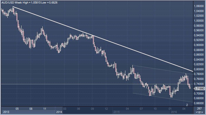 Согласно точки зрения экспертов Franklin Templeton Investments (одной из крупнейших управляющих компаний в мире), австралийский доллар упадет ниже 0.7000 к доллару США, поскольку Резервный Банк Австралии будет вынужден снова пойти на сокращение процентных ставок на фоне замедления китайской экономики. «На оставшуюся часть текущего года снижение ставок в Австралии остается на повестке дня», - утверждает Джон Бэк, директор торговли инструментами с фиксированной доходностью Franklin Templeton.