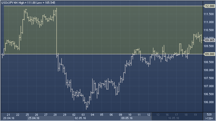 Недавний рост доллар/иены объясняется ликвидацией накопленных длинных спекулятивных позиций по японской валюте. Ближайшее ключевое сопротивление – область прохождения 55-дневной МА около Y110.50. 26-27 мая в Японии состоится саммит G7, и до этого события пара, вероятно, будет торговаться в диапазоне Y109-Y112. С одной стороны мы видим рост спроса на доллар после вчерашней публикации Протокола последнего заседания FOMC, а с другой стороны японские экспортеры будут с удовольствием продавать около Y112. Источник: ProFinance.Ru - Новости рынка Forex