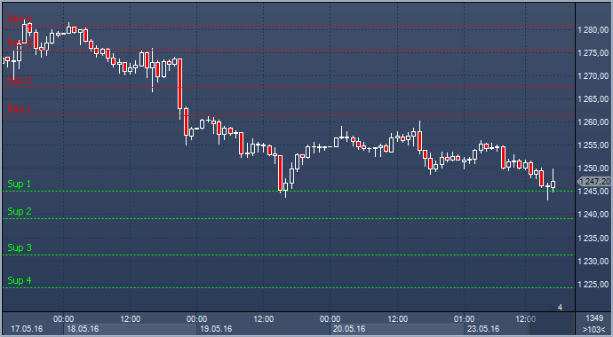 Сопротивление 2: $1267.5 — основание рынка на часовом графике, сформированное 18 мая