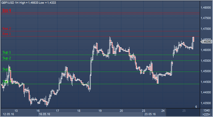 Поддержка 1: $1.4577 - часовая поддержка 24 мая