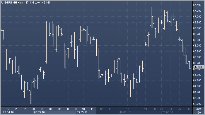На ранних торгах в четверг рубль пытается продолжить наступление на доллар и евро на фоне попыток котировок Brent и WTI закрепиться и прорваться выше $50 соответственно. Экономисты, опрошенные Bloomberg с 20 по 25 мая, несколько улучшили свои прогнозы относительно перспектив российской экономики: теперь средний прогноз предполагает ее сокращение в 2016 году на 1% против 1.5% ожидавшихся ранее (ProFinance.ru: одними из наибольших оптимистов оказались эксперты Danske Bank, повысившие прогноз с -2.1% до -0.6%). С другой стороны, по словам главы ЕС Дональда Туска, организация, вероятно, продлит антироссийские санкции еще на полгода. Как следует из данных последнего (майского) соцопроса Левада-Центра, рейтинг одобрения президента РФ Владимира Путина опустился до двухлетнего минимума. Сегодня в 16:00 мы узнаем об изменении объема резервов Банка России за неделю до 20 мая. Источник: ProFinance.Ru - Новости рынка Forex