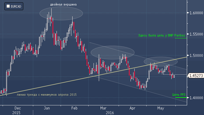 19 мая BNP Paribas купил с евро против канадской валюты от 1.4700 с целью на 1.5400 и стопом на 1.4480. К сожалению, на прошлой неделе эта позиция закрыта по стопу с убытком 220 пунктов.