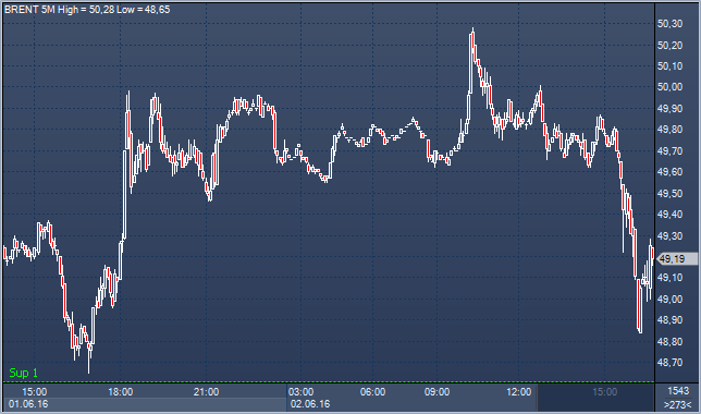 Цены на нефть падают после появления на свет решения Организации стран-экспортеров нефти (ОПЕК), которое полностью совпало с ожиданиями аналитиков. Картелю не удалось достичь соглашения о новом потолке добычи в ходе заседания в Вене. Стоимость августовских фьючерсов на нефть Brent на лондонской бирже ICE Futures к 16:11 мск снизилась на $0.73 (1.41%) до $49.01 за баррель. Котировки WTI на июль на электронных торгах Нью-йоркской товарной биржи (NYMEX) уменьшилась к этому времени на $0.8 (1.63%) до $48.21 за баррель. Перед встречей в Вене некоторые делегаты подарили рынку интригу, заявив, что картель может рассмотреть вопрос об ограничении добычи нефти. Это несколько подняло цены. По факту отсутствия обещанного теперь котировки снижаются в ожидании данных минэнерго США о запасах сырья в стране в 18:00 мск.