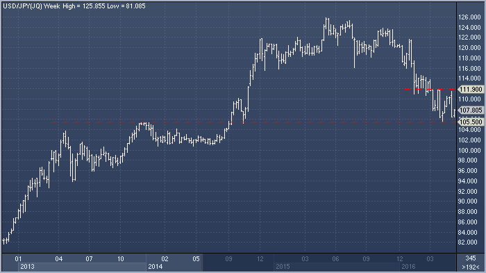 Доллар/иена вновь краткосрочно опускался ниже поддержки Y106.80 (коррекция 78.6% от роста 2014-2015 годов), которая является последним рубежом обороны перед недавними минимумами около 105.55 и максимумами 2014 года около Y105.40 (ProFinance.ru: около Y106 проходят 200-недельная и 200-месячная МА). Мы не ждем прорыва ниже этих уровней в ближайшей перспективе, однако их тестирование выглядит весьма вероятным, поэтому рекомендуем продавать на попытках роста к Y108.25-90. Для отмены медвежьего сценария необходим прорыв выше Y111.90. Источник: ProFinance.Ru - Новости рынка Forex