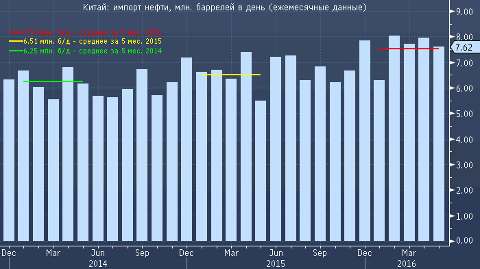 Импорт нефти в Китай в мае упал, но за 5 месяцев 2016 сильно вырос