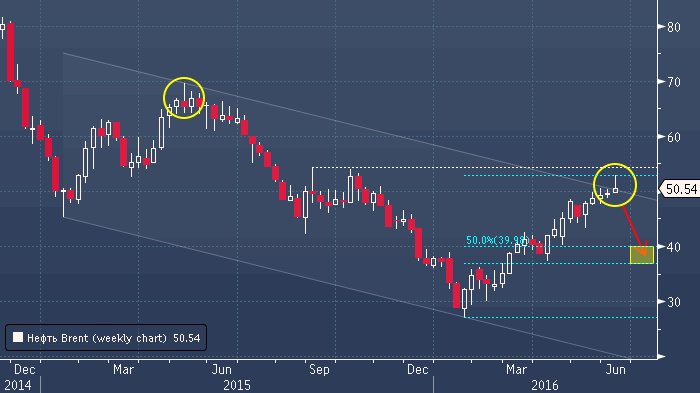 На прошлой неделе цены на нефть протестировали максимумы с октября прошлого года, однако закрепить за собой эти достижения нефтяным котировкам не удалось, хотя неделя в итоге завершилась в небольшом плюсе. Ряд факторов дает основания предполагать, что для ралли цен на нефть, которое наблюдалось с января текущего года, по времени назрела нисходящая коррекция, потенциал которой в перспективе ближайших недель подразумевает возвращение цен в диапазон 37 – 40 долларов за баррель. О возвращении цен ниже 30 долларов за баррель речь не идет, поскольку фундаментально дисбаланс спроса и предложения объективно улучшился и оснований для повторного тестирования минимумов или же еще более глубокого снижения цен в данный момент не наблюдается.
